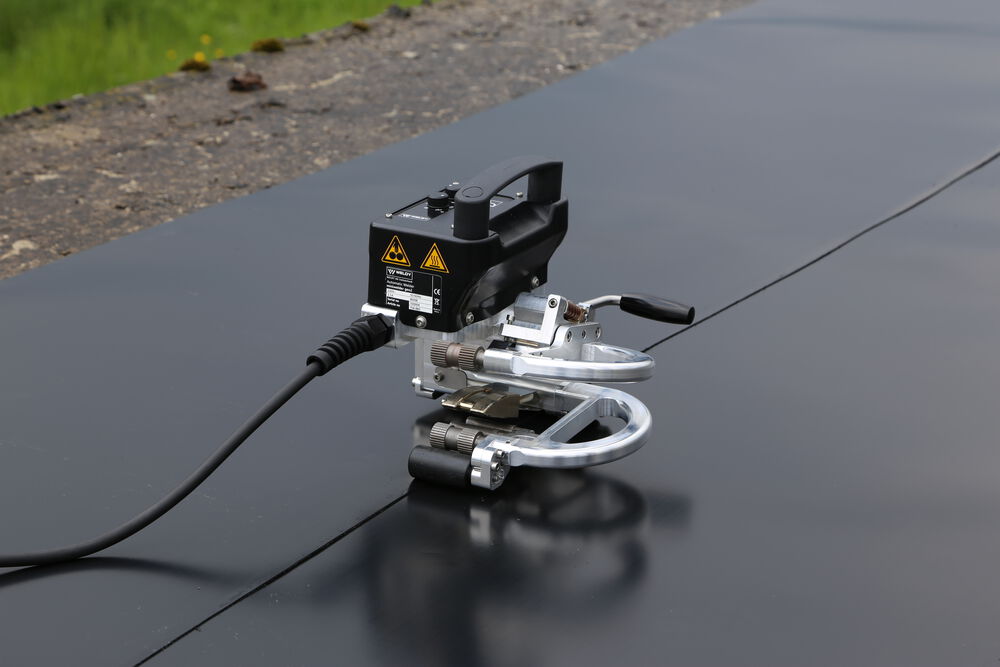 The lightweight and quick miniwelder geo2 from Weldy is suitable to weld geomembranes ranging from 0.5 - 1.5 mm thickness (HD-PE 0.4–